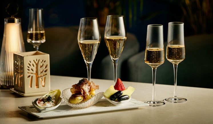 도심의 야경이 반짝이는 문 바에서 샴페인을 무제한으로 맛볼 수 있는 샴페인 아워가 펼쳐집니다.
